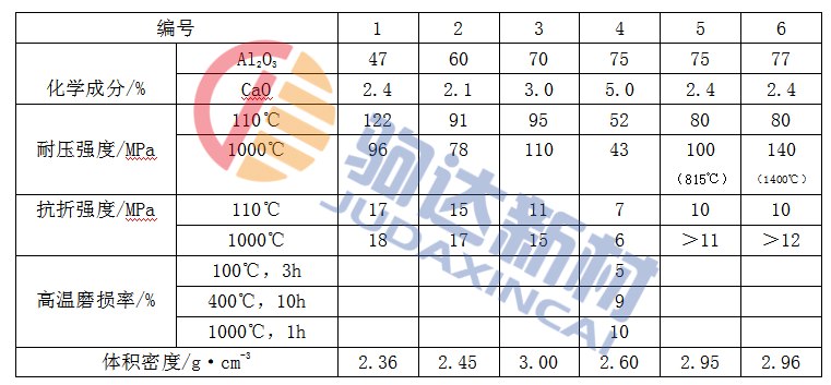 耐磨耐火澆注料的性能