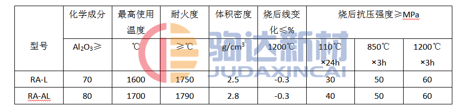 RA系列超高強(qiáng)度低水泥澆注料技術(shù)指標(biāo)