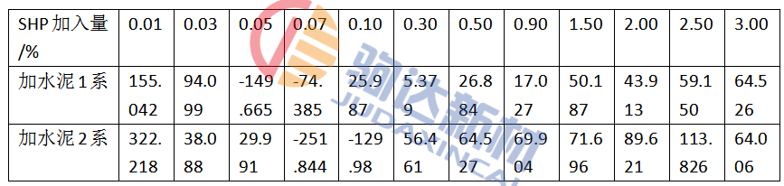 STP與SHP同為陰離子型添加劑,在水中可電離出陰離子基因。而水泥粒子及高鋁粒子與水接觸后,表面開始水化,會(huì)溶出Ca2+、Al3+,即:CaO·Al2O3+4H2O→Ca2++2Al3++8OH-