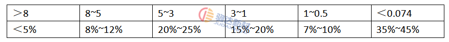表2 物料粒度分布表 mm