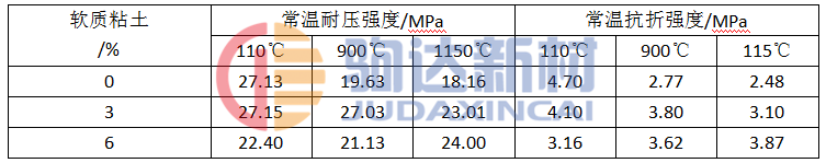 粘土加入量對澆注料性能的影響
