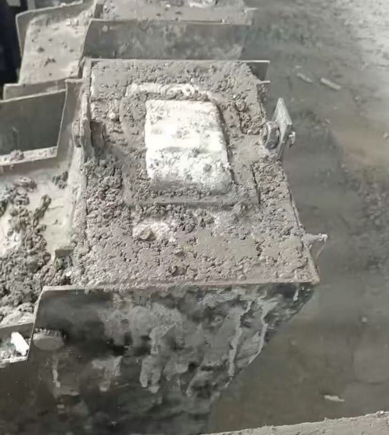 此客戶與我公司合作時(shí)間長(zhǎng),最初也針對(duì)該客戶用澆注料的要求做過(guò)專業(yè)的配方實(shí)驗(yàn),也得到客戶的認(rèn)可,并且一直延續(xù)實(shí)驗(yàn)配方的生產(chǎn)從未改變過(guò)。配方的最主要地方就是顆粒級(jí)配比同等澆注料的級(jí)配小,因?yàn)榭紤]爐芯壁厚最薄的地方只有2cm,如果采用大顆粒澆注料,在壁厚薄的地方會(huì)發(fā)生強(qiáng)度下降,脫模磕碰掉角的情況,所以采用小顆粒級(jí)配?蛻艚衲暝谖夜居嗁(gòu)了三次高鋁自流澆注料,分別在3月份、4月份和5月份。前二次均未出現(xiàn)任何問(wèn)題,而第三次則出現(xiàn)了澆注料攪拌后倒入模具內(nèi)振動(dòng)過(guò)程中,不流動(dòng),不泛漿,團(tuán)聚發(fā)黏,黏膜等問(wèn)題。客戶又將前二次使用澆注料制作成的爐芯,與第三次澆筑的爐芯做了對(duì)比,發(fā)現(xiàn)有很大的差距,其原因在澆注料入模后出現(xiàn)不流動(dòng)致使模具邊角,下部出現(xiàn)空腔區(qū),蜂窩區(qū)等情況,后來(lái)反饋于我公司。